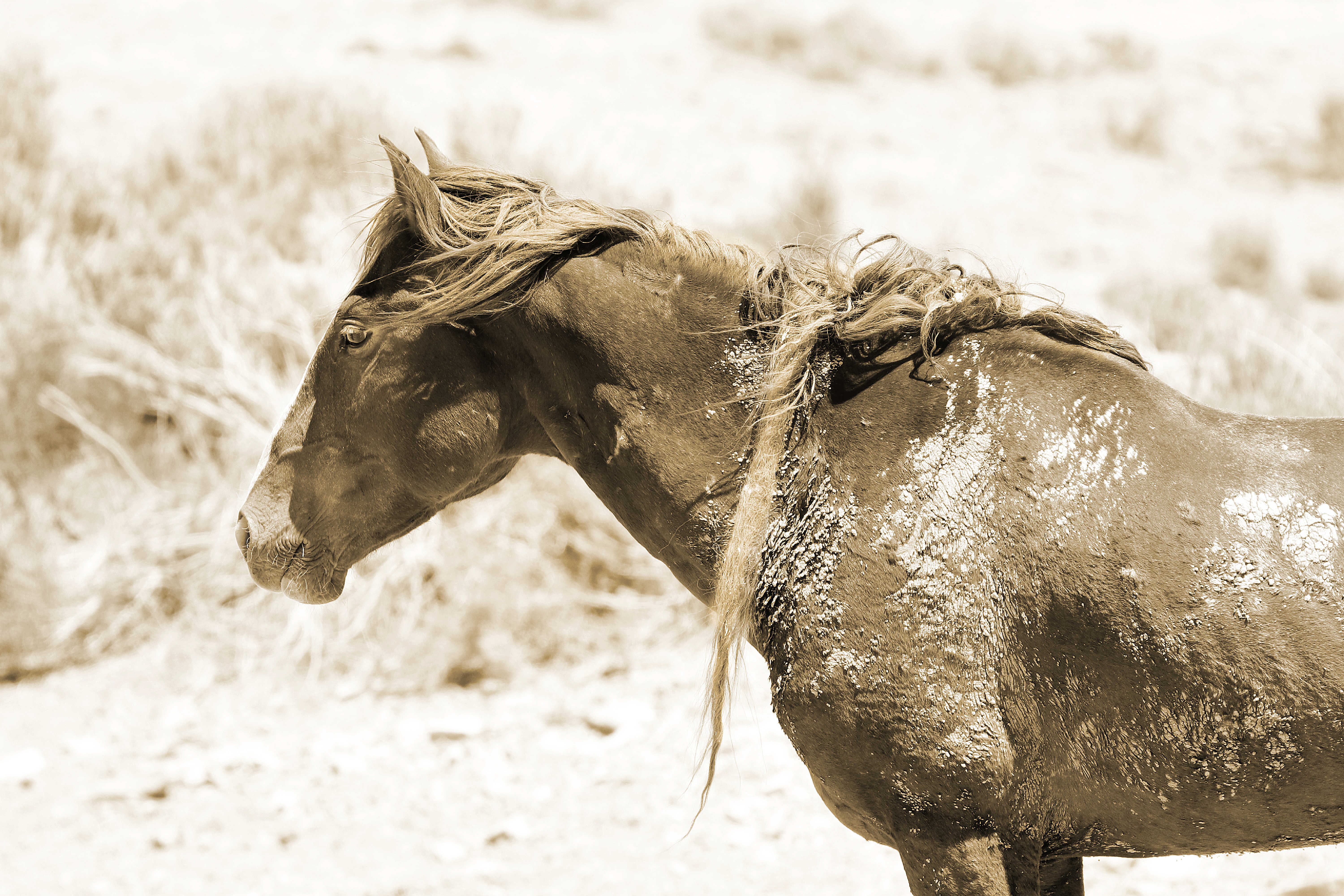 A gorgeous Sand Wash Basin wild horse observing the action nearby